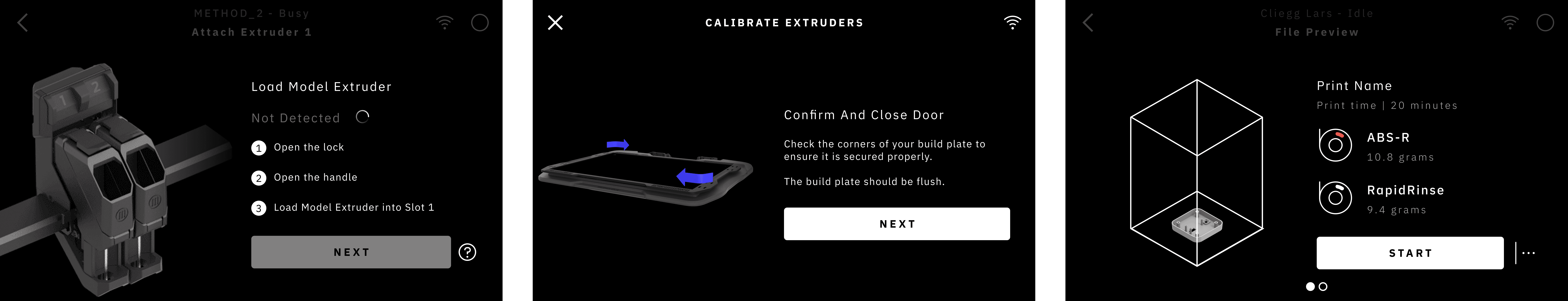 A ground‑up redesign that unified three Method printers into one UI platform. Each model has unique hardware—the XL's external material bay, the base models' internal systems—so we built conditional flows that adapt without fragmenting the experience.